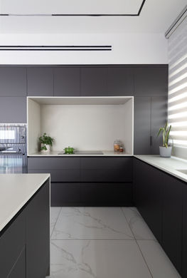 כך נולד בית שמתאים לחיים האמיתיים, מלא אופי וחמימות. מצאתי פתרונות יצירתיים לכל מה שהיה חשוב לה לשמר: עשרות עציצים ירוקים שמצאנו עבורם את המיקומים המושלמים בכל פינה בבית. הם מתמזגים עם העיצוב הנקי ומוסיפים חיים ורעננות, ממש כמו חיבוק בכל פעם שהיא נכנסת בדלת, אוסף פעמונים שליווה אותה שנים וגדל בכל טיול חדש בארץ ובעולם, ופריטים סנטימנטאליים אחרים שהזכירו לה משפחה אהובה וחוויות נעימות.